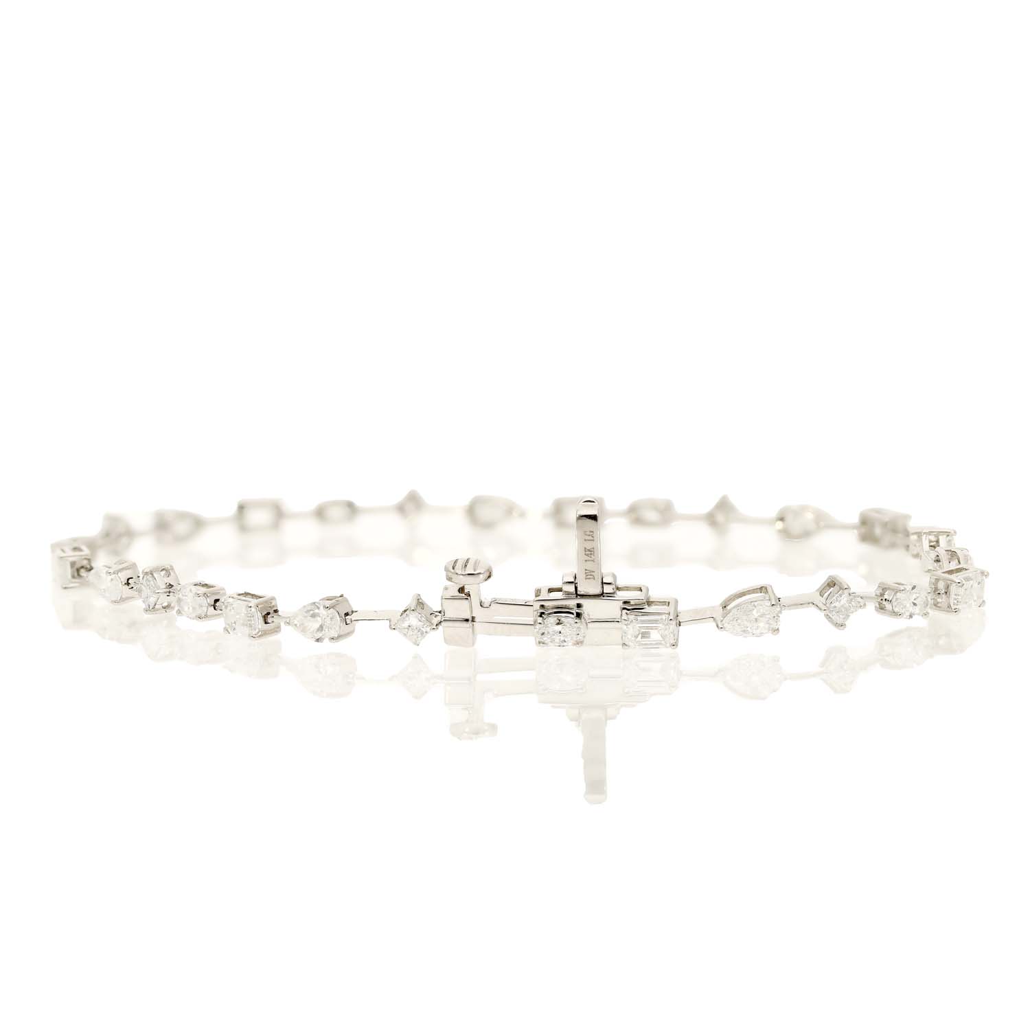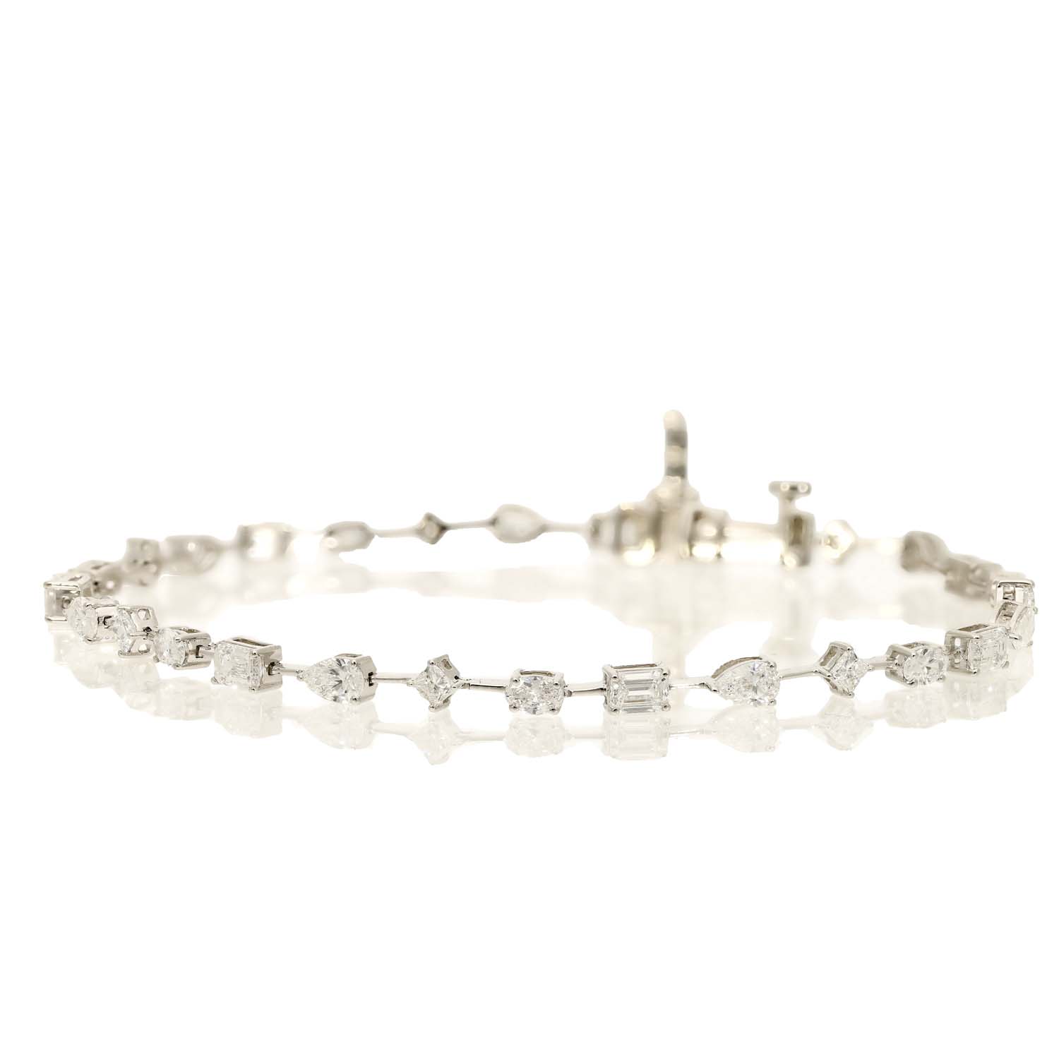 Celebrate the diversity of diamond shapes with this sophisticated 14K white gold station bracelet. Each “station” along the delicate chain features a different diamond cut, creating a rhythmic and playful dance of light across the wrist.