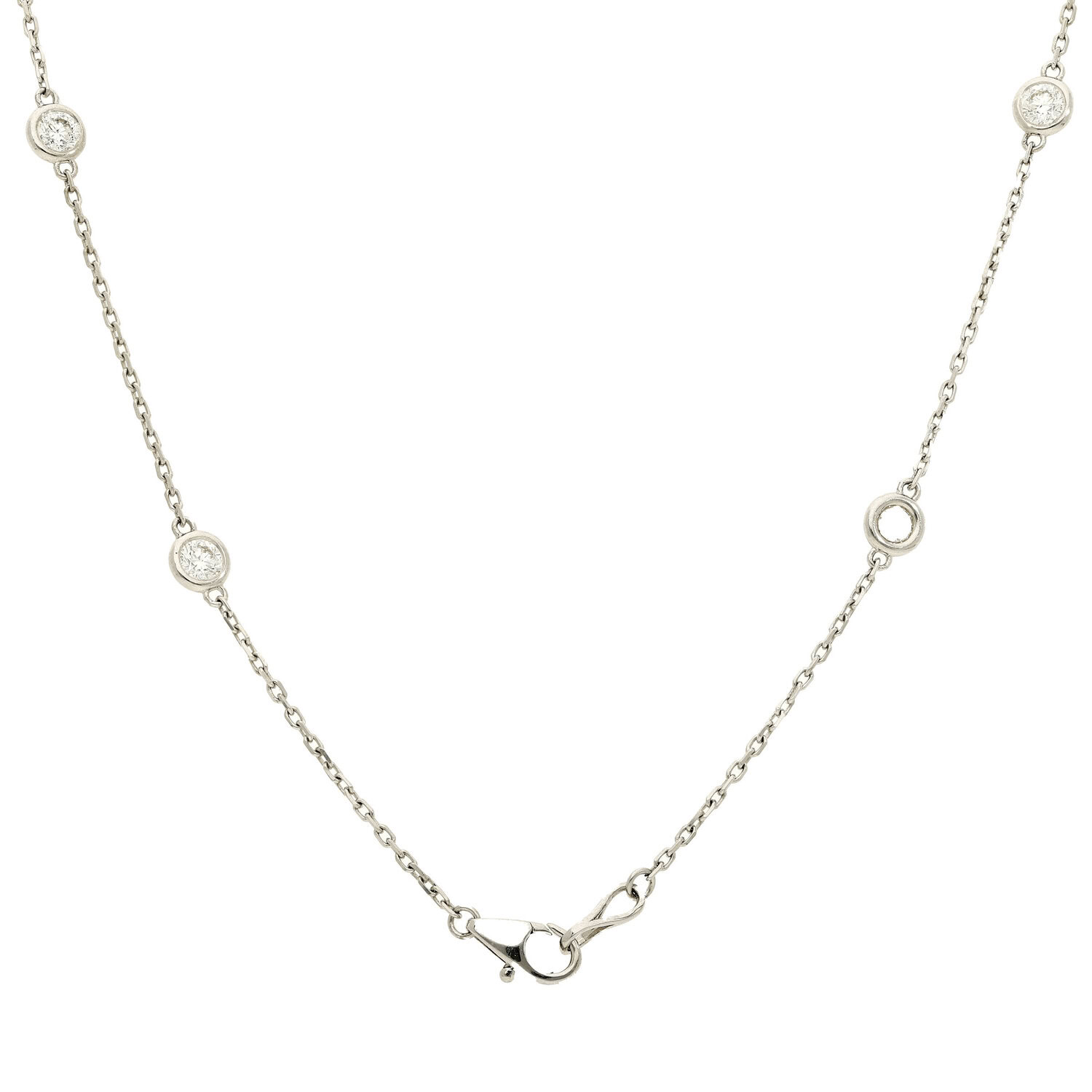 An 18K white gold diamond by the yard necklace with 10 round diamonds totaling 1.64ctw